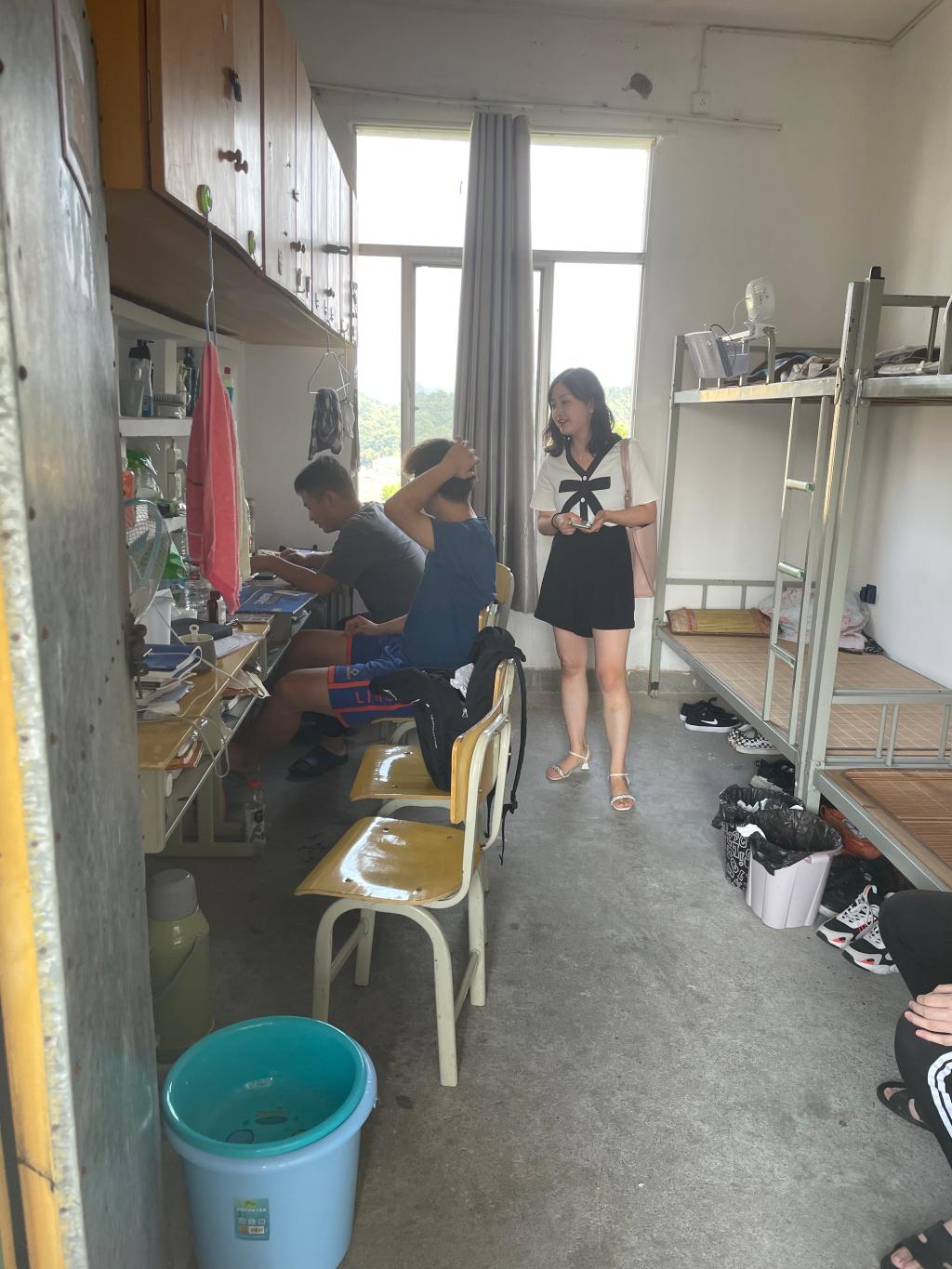 国庆假期即将来临,在寝室中,欧阳老师与员工亲切地到同学们国庆节假期安排,向员工们开展了防范网络诈骗、疫情防控、交通、财产等安全教育,了解员工在宿舍的生活情况。他们提醒员工宿舍内不得违规使用大功率电器,不超负荷用电,假期离开宿舍时要做到人离关灯、关电源及各种用电设备。同时也切实掌握员工假期去向及思想情况,掌握员工动向。