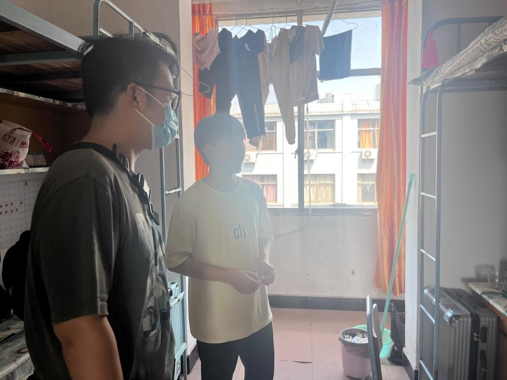 在寝室中,彭老师与员工亲切地聊天,了解同学们的到校感受,询问大家是否有什么困难,问到同学们国庆节假期安排,向员工们开展了防范网络诈骗、疫情防控、交通、财产等安全教育,了解员工在宿舍的生活情况。他们提醒员工宿舍内不得违规使用大功率电器,不超负荷用电,离开宿舍时要做到人离关灯、关电源及各种用电设备。叮嘱员工养成良好的生活习惯,做好上课的准备,一张一弛,合力安排好时间,度过一个充实而美好的老员工活。